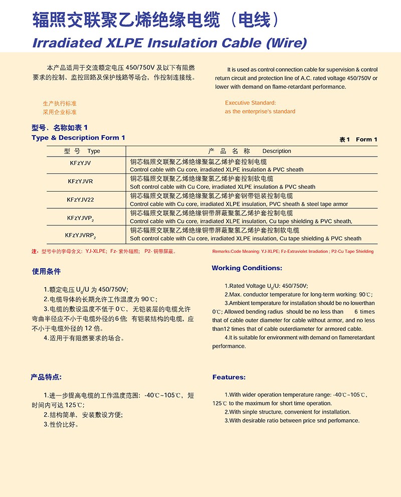 - 產品名稱:輻照交聯聚乙烯絕緣電纜(電線)