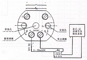 ·根據變送器銘牌上標明的傳感器和量程范圍,輸入相應的阻值,使輸出為1v和5v(可分別調整零點電位器和滿度電位器);